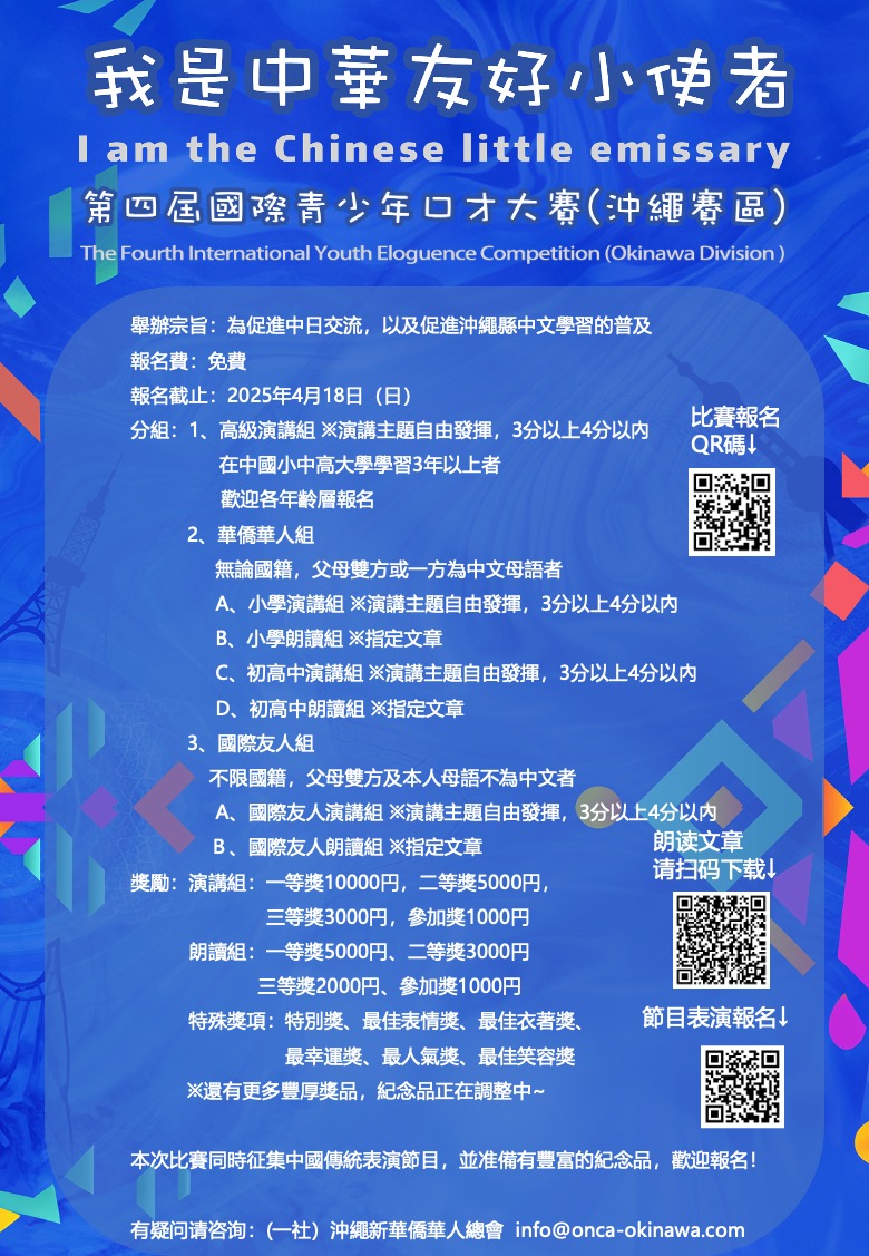 孩子们的“高光时刻”来啦![我是中华友好小使者・第四届国际青少年口才大赛(冲绳赛区)]开始报名啦,这不仅是一个展示中文水平的舞台,更是锻炼孩子胆量、提高表达能力的绝佳机会。